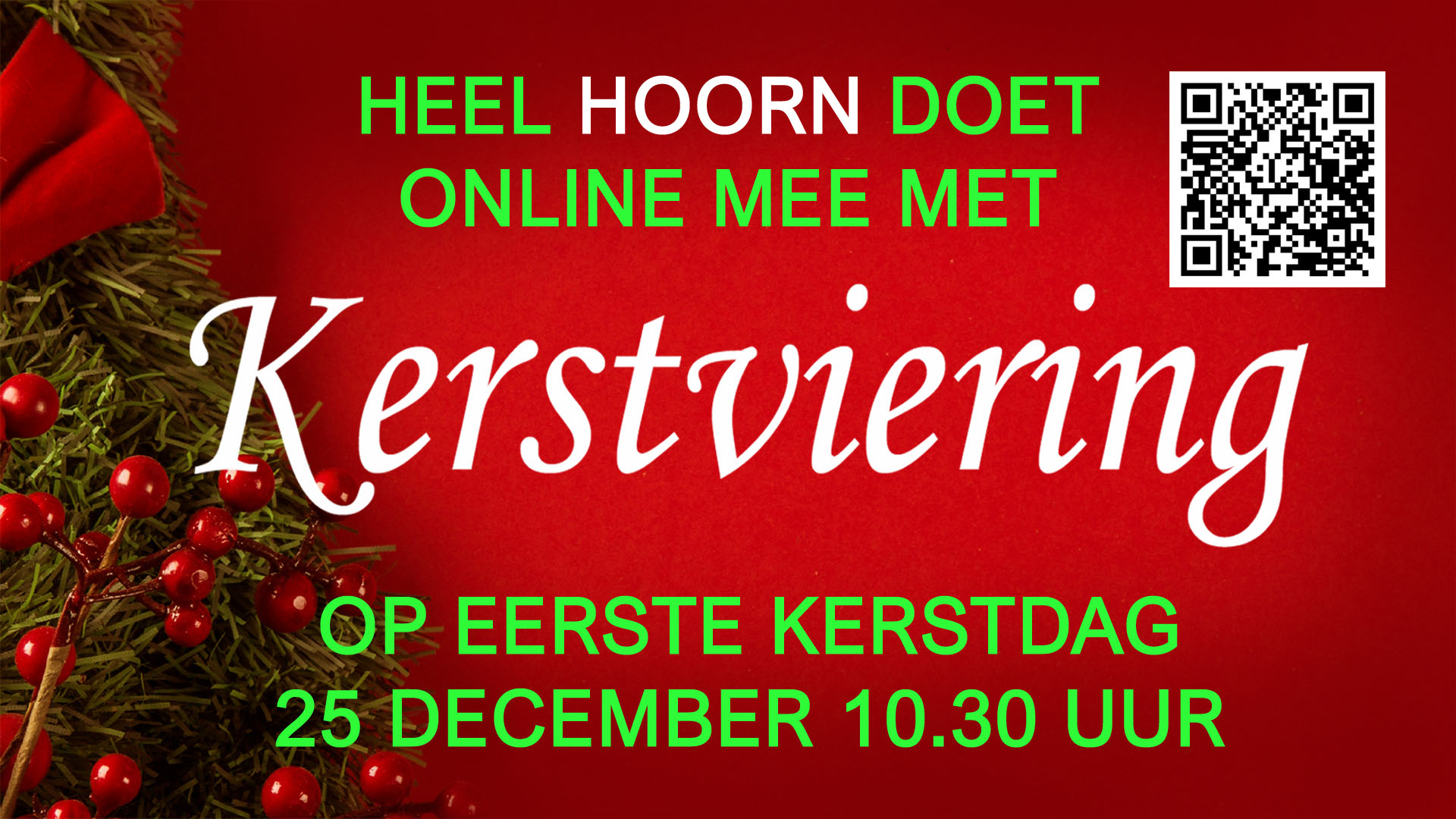 Het gaat alles anders dan we gewend zijn. Toch geloven wij dat ook op deze manier Kerst ons verbíndt. Misschien wel meer dan ooit. Van delen word je blij. Nodig daarom ook anderen uit voor deze speciale uitzending. Klik op deze link of scan de QR-code om direct naar de uitzending te gaan. Een rijke Kerst gewenst!